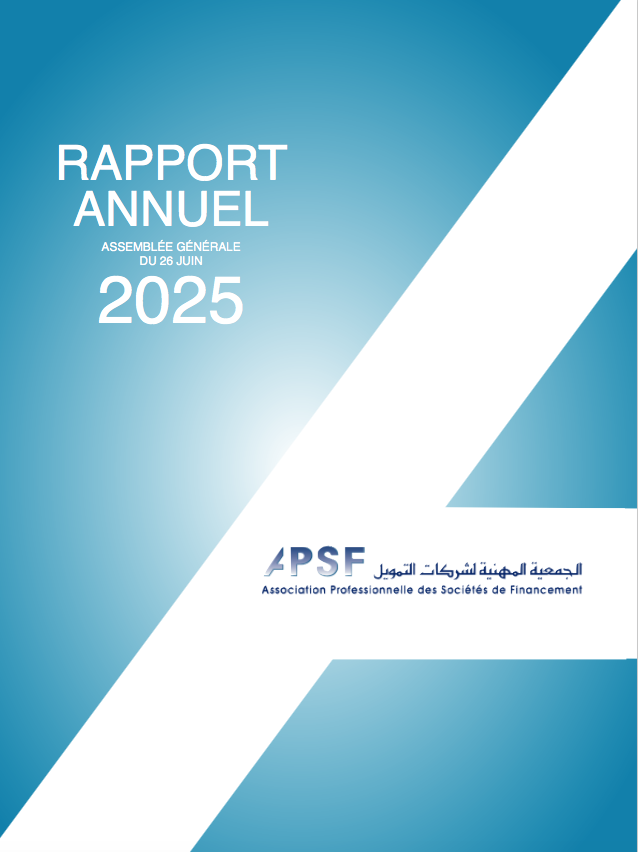 ♦ L’APSF, hommage aux fondateurs ♦ L’APSF, 20 ans de progrès L’APSF, mission ♦ L’APSF, offres de financement ♦ L’APSF, organisation ♦ L’APSF, financement de l’économie nationale ♦ L’APSF, partenaires nationaux ♦ L’APSF, partenaires internationaux ♦ L’APSF, déontologie ♦ L’APSF, SAAR ♦ L’APSF, credit bureau ♦ L’APSF, SAM ♦ L’APSF, statistiques d’activité ♦ L’APSF, reportings à Bank Al-Maghrib ♦ L’APSF, recueil des conditions d’exercice des sociétés de financement ♦ L’APSF, édition sous forme électronique du PCEC ♦ L’APSF, formation ♦ L’APSF, éducation financière ♦ L’APSF, premières Assises nationales ♦ L’APSF, publications ♦ L’APSF, éclairage sur les métiers de financement ♦ L’APSF, expertise reconnue à l’international ♦ L’APSF, élargissement du champ d’activité des sociétés de financement ♦ L’APSF, protection du consommateur ♦ L’APSF, amélioration des conditions d’exercice des sociétés de financement ♦ L’APSF, équité entre établissements de crédit ♦ L’APSF, traitement fiscal approprié ♦ L’APSF, allégement des procédures administratives ♦ L’APSF, sécurité des points de vente ♦ L’APSF, engagement social